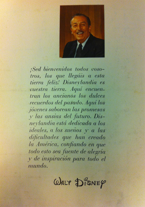 El libro en cuestión, titulado “Disneylandia”, consta de unas 65 páginas, está repleto de fotografías de la época, y tiene un curioso estilo narrativo desde la perspectiva de Peter Pan que nos hace una visita guiada por cada rincón del parque.