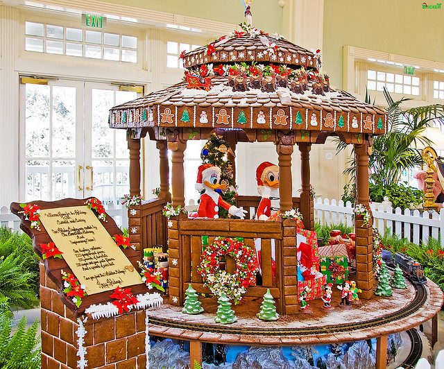Entre las geniales decoraciones navideñas del hotel Disney’s Grand Floridian destaca una casita de galletas de jengibre a tamaño natural.