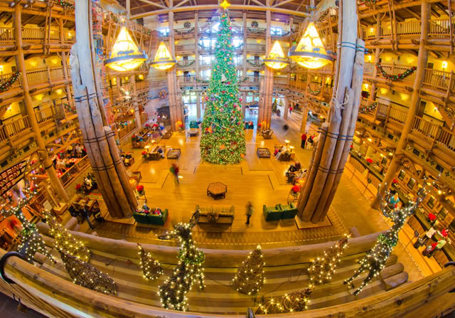 Posiblemente uno de los hoteles de Disney más acogedores, aquí podrás ver un árbol de Navidad gigante de más de 20 metros de altura.