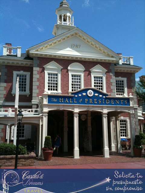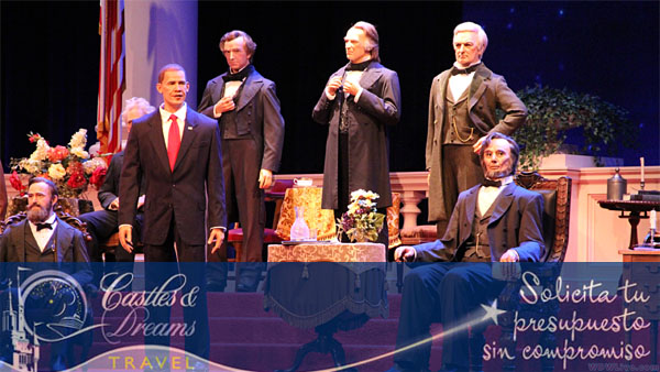 “El Salón de los Presidentes” – como se conoce este espectáculo en español – tiene lugar en un elegante teatro de estilo colonial donde figuras audio-animatronic extremadamente detalladas de los 44 presidentes de los Estados Unidos (incluyendo el actual presidente Barack Obama) aparecen en escena para relatar la historia de su país.